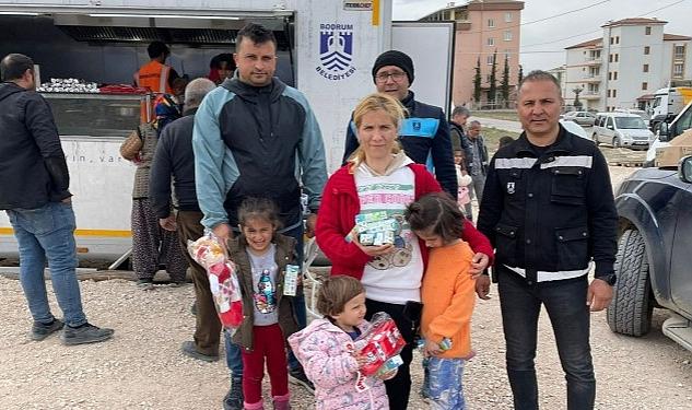 Bodrum Belediyesi grupları, Malatya Cemal Gürsel Mahallesinde İzmir-Bornova Belediyesi’nin çadır kentinde ve Fahri Kayahan Bulvarında İzmir-Güzelbahçe Belediyesi tarafından kurulan konteyner kentte gönüllülerle birlikte halka hizmet ediyor.